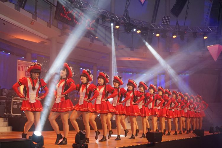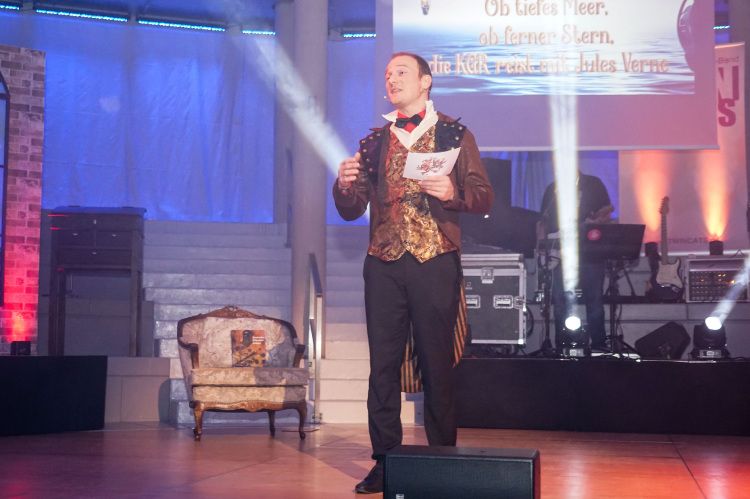 Die Moderation des Abends übernahmen die beiden Vorstandschaftsmitglieder Diane Dreger und Simone Kerner, die elegant und souverän durch das Programm führten. Den Auftakt in das Showprogramm machte wie bereits seit vielen Jahren die Stechergarde, das Aushängeschild des Vereins. Die jungen Damen haben lange trainiert und meisterten ihren ersten Auftritt mit Bravour. Trainiert wird die Gruppe von Simone Kerner und Lisa Dudenhöffer-Essert. Dann war der große Moment gekommen. Sitzungspräsident Michael Haag, las eine Geschichte im Stile von Jules Verne vor, ergänzt durch Bilder und Hinweise auf das neue Prinzenpaar. Zu den Klängen von „Arrival to Earth“ zogen beide mit Standarte, Garde und Elferrat in die Dampfnudel ein.
