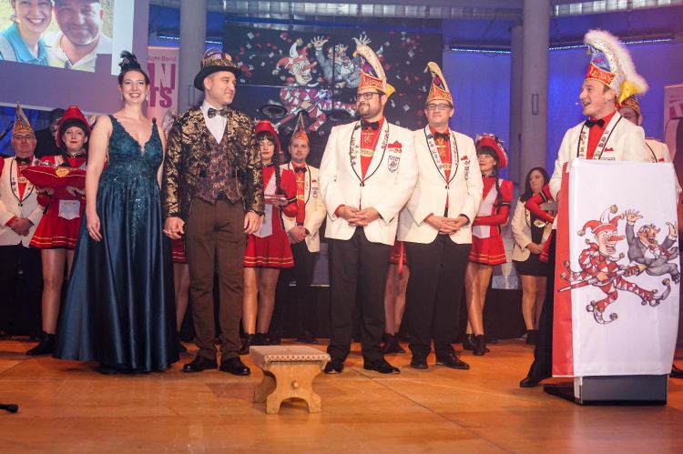 Der erste Vorsitzende Michael Gadinger konnte zahlreiche Gäste in der fastnachtlich geschmückten Dampfnudel begrüßen, darunter den Ortsbürgermeister Reiner Hör, den ersten Vorsitzenden der Kulturgemeinde Rülzheim, Michael Braun, sowie den Hauptsponsor Rolf Serr und Anna-Maria Bartl von der Fa. Burkhard Müller Schmuck. Auch die Karnevalsfreunde des CV Impflingen „Die Hanneber“ waren mit der Partie und wollten dem neuen Prinzenpaar die Ehre erweisen.