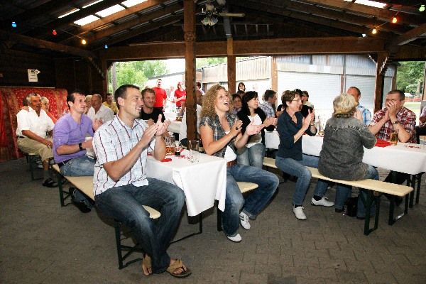 Wenngleich das Rülzheimer Prinzenpaar noch mitten in ihrer Amtszeit sind, luden Simone und Eric zum Feiern ein. Im Vereinsheim hatten sie sich eingemietet und sehr stilvoll zu einem Fest alles arrangiert. Die große Narrenschar wurde mehr als freundlich empfangen und mit tollem kulinarischem Angebot verwöhnt. Natürlich waren die beiden Eltern des Paares voll in den Service integriert. In ihrer Begrüßungsansprache stellten Eric und Simone heraus, dass sie immer ein integraler Bestandteil der Rülzheimer Narren waren und sind, was ihnen das Amt sehr viel leichter werden ließ. Bei ihrer Ansprache deuteten sie an, dass in ihrer Amtszeit doch noch einiges zu tun anfällt. Da ist der Kerweumzug am 31. Juli, bei dem beide auf die Unterstützung der Aktiven hoffen. Am 14. August ist das Volksradfahren, wo beide sich auch eine mächtige Unterstützung wünschen und schließlich das Heimatfest, mit dem Umzug als Höhepunkt, auch da werden alle Aktiven um Unterstützung gebeten.