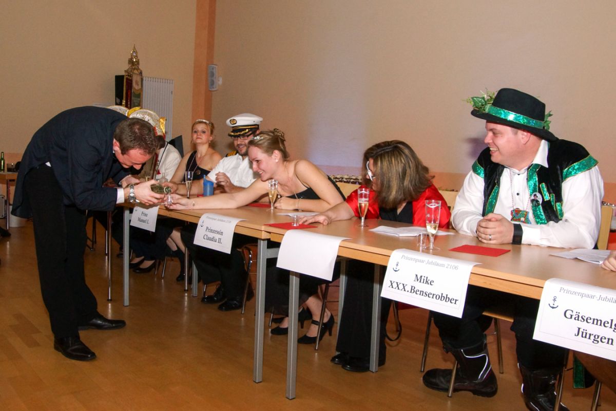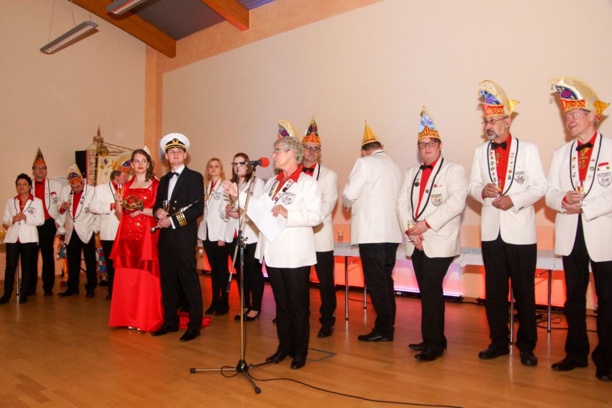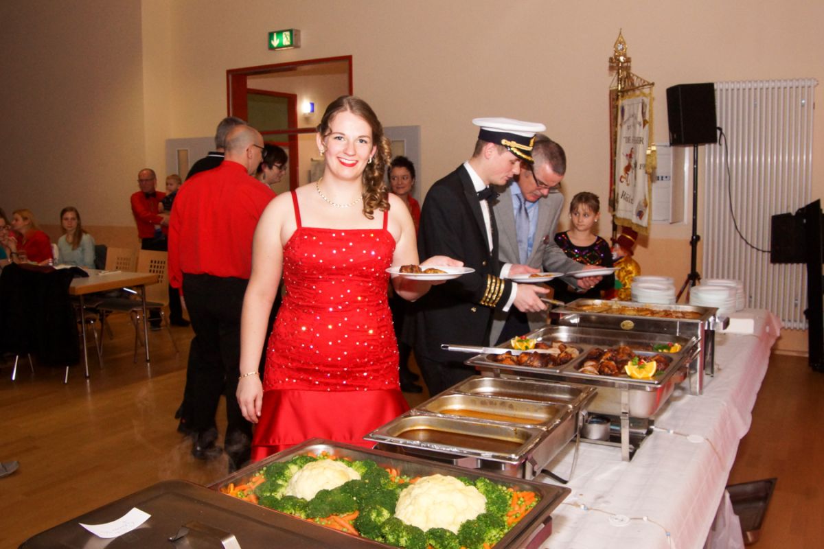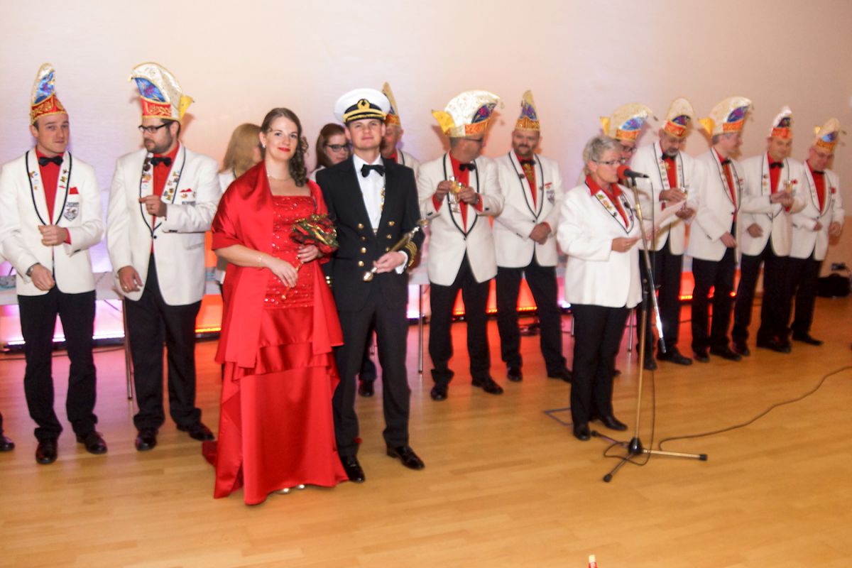 Dann wehte amerikanisches Flair durch den Saal, als Sebastian Hör mit seiner neuen Figur „Donald Trumpel“ in der Bütt stand. Danach präsentierten mehrere KGR-Aktive unter großem Gelächter im Saal ihre Version des „Dinner for One“, das sie schon am Prinzenfest aufgeführt hatten, bevor am Ende Prinzessin Lisa I. und Prinz Manuel I. die Insignien der Macht zurückgaben und ihren wohlverdienten Ruhestand antraten.