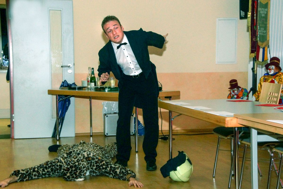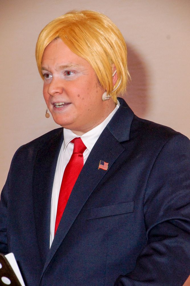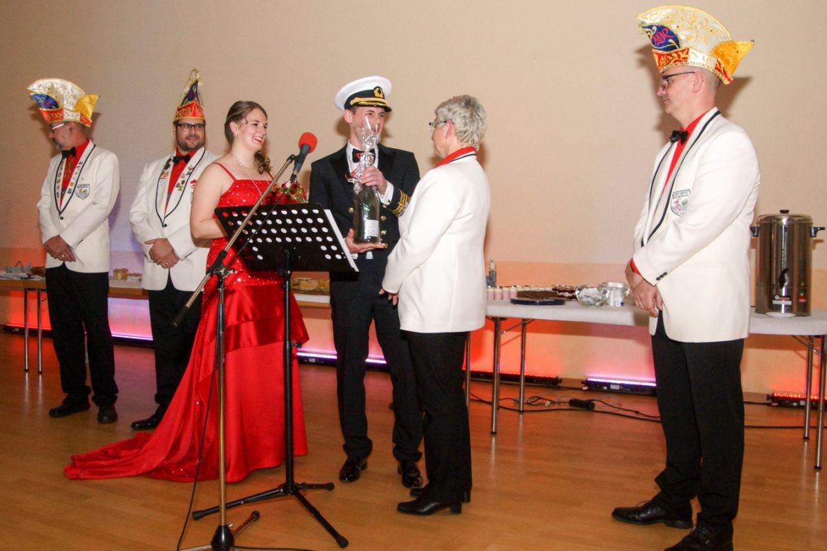 Dann wehte amerikanisches Flair durch den Saal, als Sebastian Hör mit seiner neuen Figur „Donald Trumpel“ in der Bütt stand. Danach präsentierten mehrere KGR-Aktive unter großem Gelächter im Saal ihre Version des „Dinner for One“, das sie schon am Prinzenfest aufgeführt hatten, bevor am Ende Prinzessin Lisa I. und Prinz Manuel I. die Insignien der Macht zurückgaben und ihren wohlverdienten Ruhestand antraten.