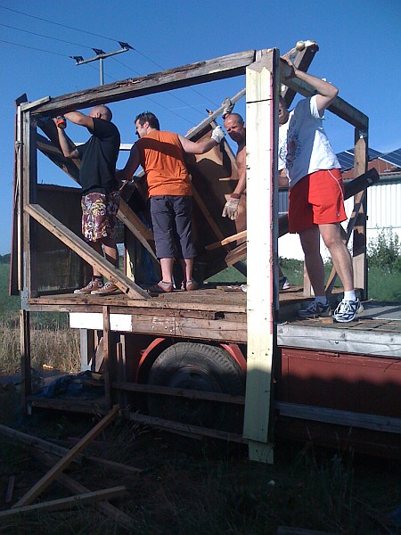 Die Karnevalsgesellschaft Rot-Weiß „Die Stecher“ bereiten sich für das Heimatfest vor. Zum einen will man einen Stand auf dem Deutsch Ordensplatz mit einer Life-act Bühne und einem Zelt betreiben, zum anderen soll unser Prinzenpaar mit einem Prunkwagen beim Umzug teilnehmen. Die Bauarbeiten sind in vollem Gange.