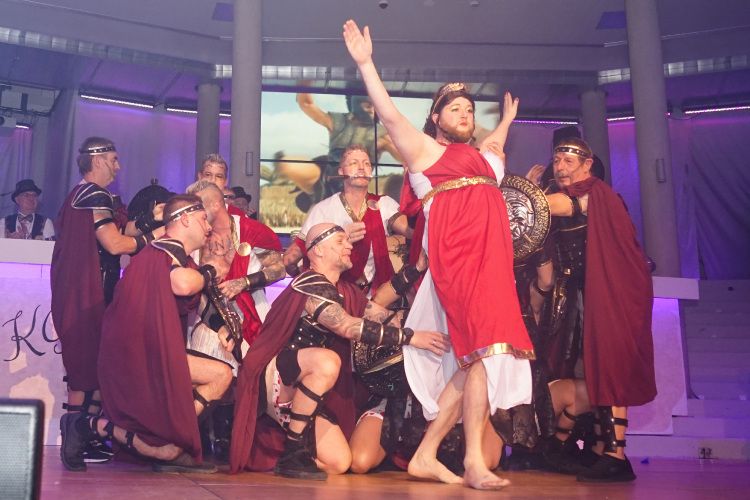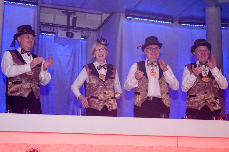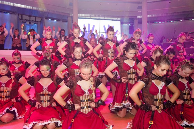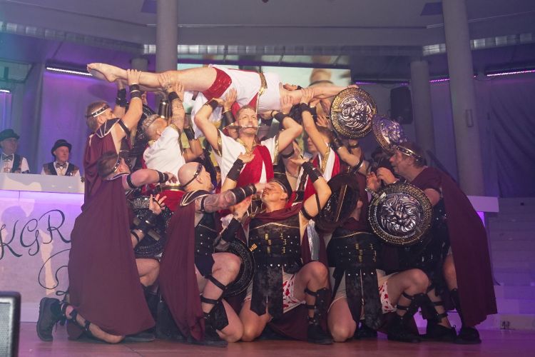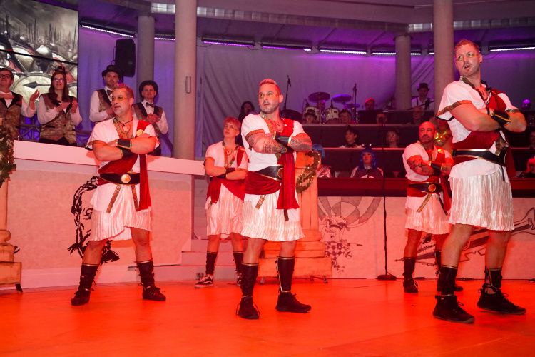 Anschließend zog das Frauenballett, trainiert von Tina Weber, mit ihrem fesselnden Schautanz „Die Reise zum Mittelpunkt der Erde“ mit vielen Spezialeffekten, bunten Kostümen und Songs wie „Survivor“ die Zuschauer in ihren Bann. Nach einer weiteren Schunkelrunde eroberte dann das Männerballett die Bühne. Und – wie sollte es auch anders sein – riss der Auftritt der Gruppe die Gäste schon während dem Tanz von den Stühlen. Die Trainerinnen Ramona und Florin Mendel übertrafen alle Erwartungen und freuten sich über die verdiente Zugabe.